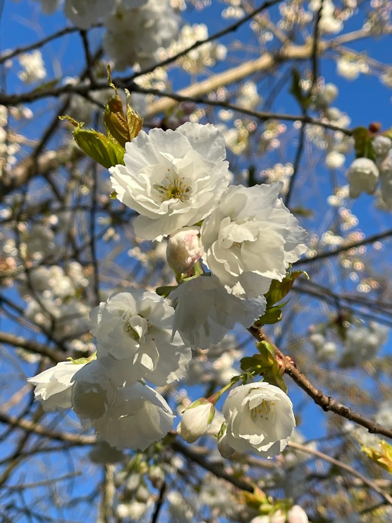 UPDATE! Following the pattern of things it turns out I may have given up hope too soon. My old friend Katie B sent me an urgent triage text after I posted this to say the following. I hope she won’t mind me quoting her in full. “Hi Angela, I just read your latest blog post. Your cherry tree might be having a fallow year because of the cherry ermine moth. They wrap the shoots in cobwebs and the caterpillars eat the shoots and buds. For the rest of the season, the tree looks dead but usually survives and comes back next year. We’ve just been looking at their cousins the Spindleberry ermine moth on our local nature reserve. The trees they’re in look devastated but will keep growing. Fingers crossed it’s just very hungry caterpillars. The moths are beautiful, not a great show of pink blossom beautiful, but beautiful all the same. X”